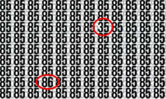 Sljedeća zagonetka zahtijeva od vas da pronađete dva skrivena broja – 86 i 35 – među velikim brojem od 85 brojeva, piše jagranjosh. Neće biti lako uočiti gdje se točno kriju brojevi koji se razlikuju od svih ostalih.
