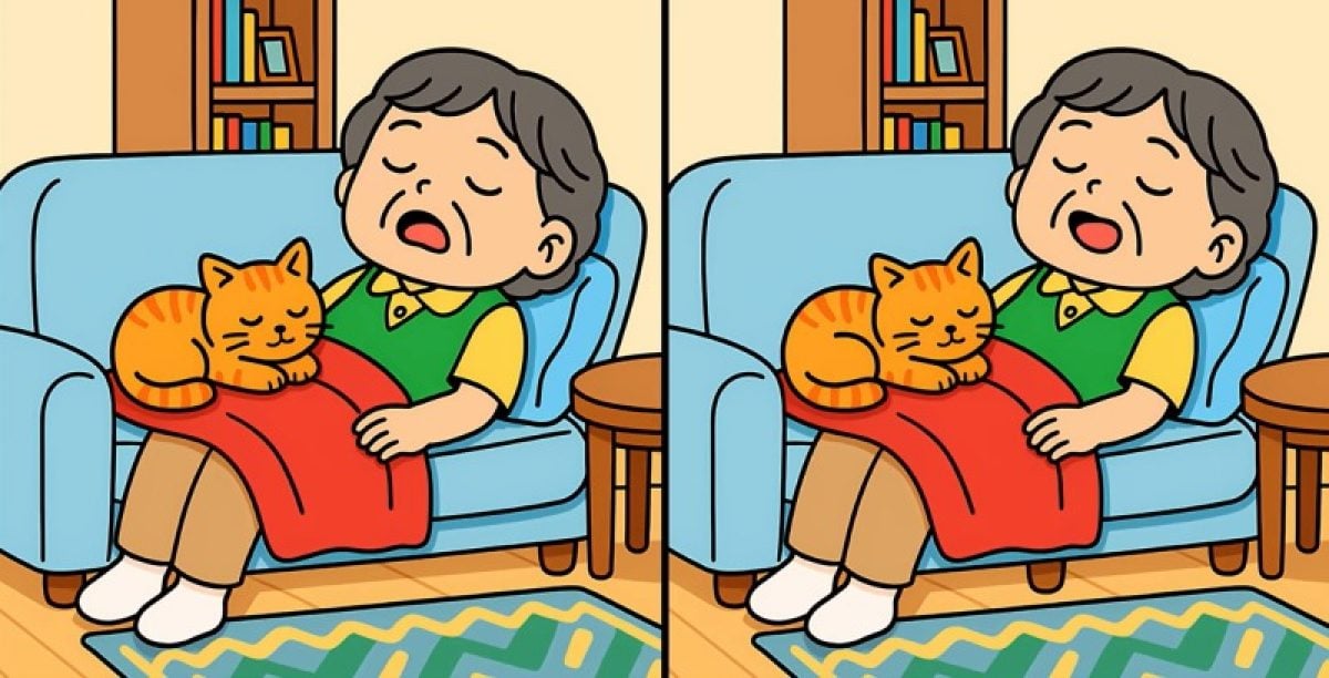 Jeste li spremni testirati se? Evo dvije ilustracije: prikazuju ženu i mačku kako spavaju na sofi. Na prvi pogled, scene izgledaju potpuno isto, ali se između njih kriju tri male razlike.