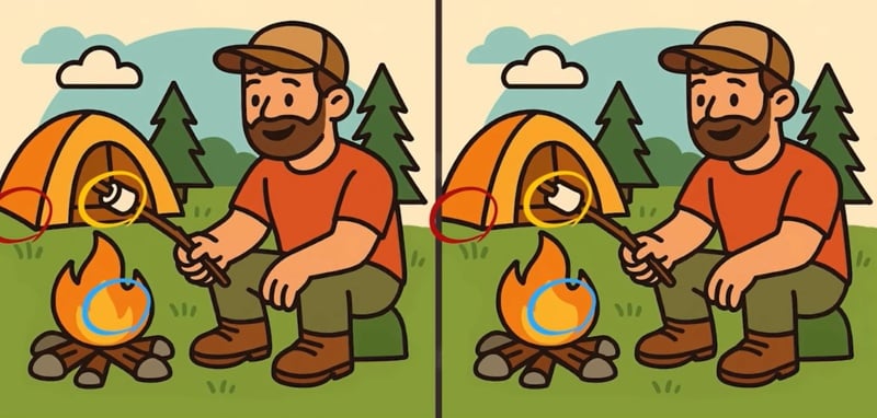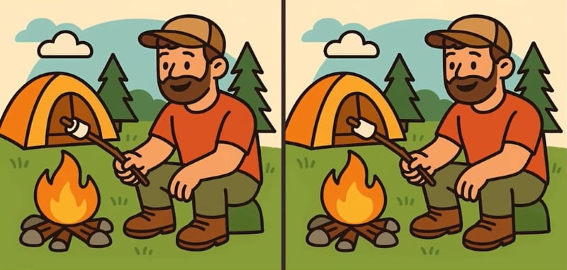 Ovaj put gledat ćete slike čovjeka koji peče sljez na vatri. Na prvi pogled potpuno su identični, no umjetnica je sakrila tri male razlike. Imate samo 51 sekundu da ih pronađete!