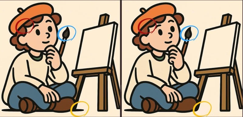 Jeste li spremni testirati svoju moć zapažanja? Pogledajte dva crteža koji prikazuju umjetnika kako sjedi ispred platna. Na prvu se može činiti da su slike potpuno identične, ali između njih se kriju tri male razlike.