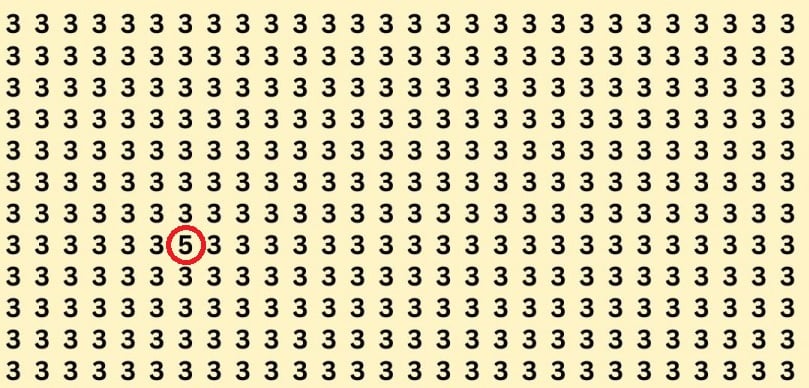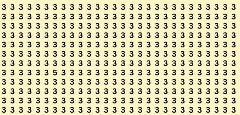 Na slici vidimo veliki broj brojeva 3, koji su smješteni u retke i stupce. Na prvi pogled se čini da među njima nema karakterističnih brojeva, ali zapravo to nije tako. Pet ih je skriveno negdje neprimijećeno, koje neće biti lako pronaći.