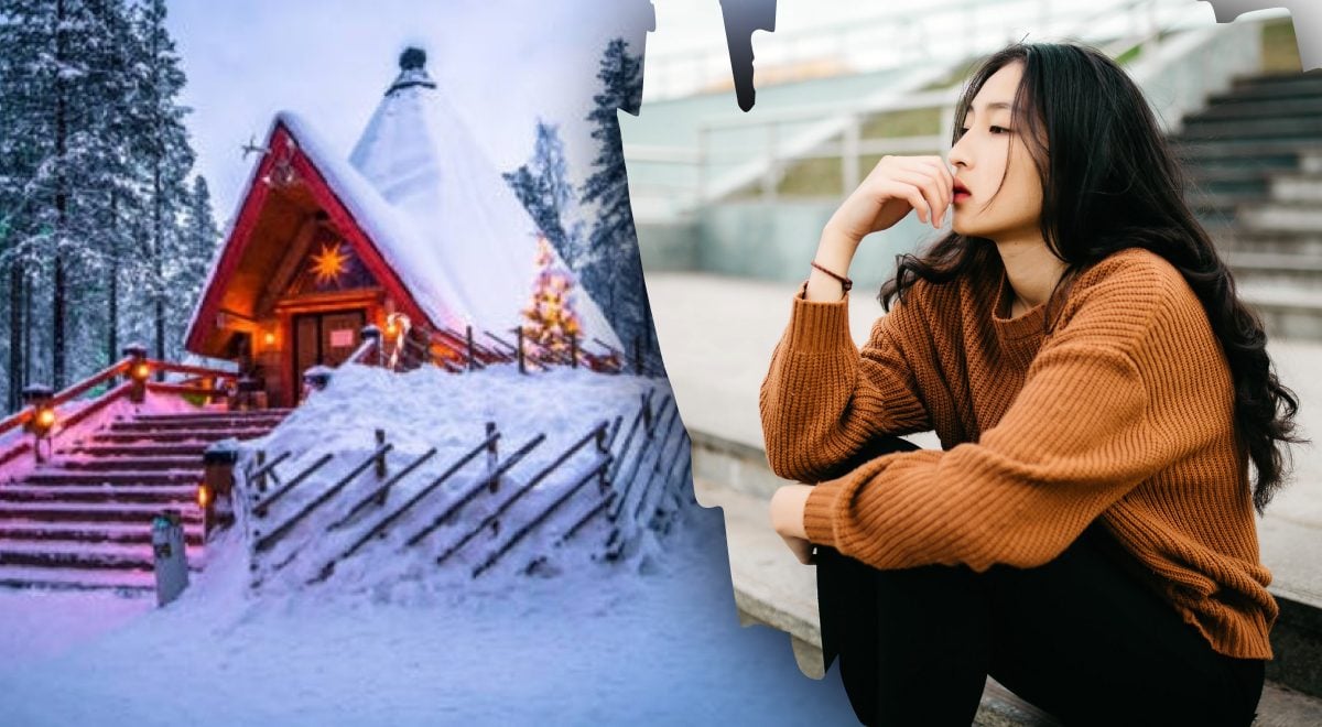 Na fotografiji je prikazana kuća do koje se morate popeti velikim stubištem. Oko kuće je crnogorična šuma, grane drveća se savijaju od velike količine snijega. U blizini kuće su lampioni, a cijelo dvorište je prekriveno debelim slojem snijega koji gotovo u cijelosti prekrije ogradu.