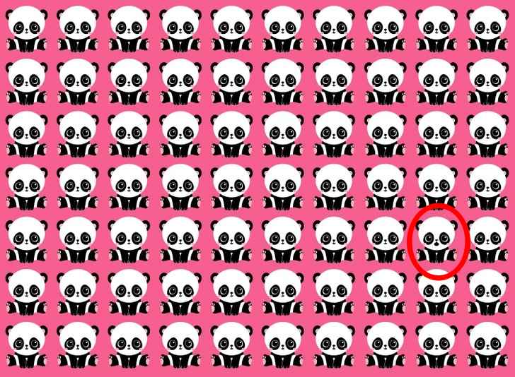 Nije išlo? Uhvatite odgovor – pandu, koja nije kao ostale, u donjem desnom kutu. Ona ima otvorena usta, dok druge pande imaju zatvorena usta.