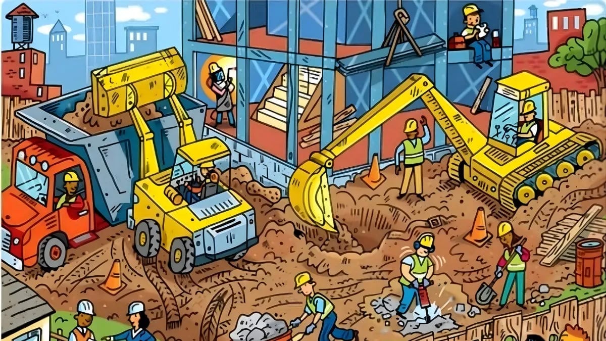 U ovoj slagalici, banana je skrivena usred gradilišta.