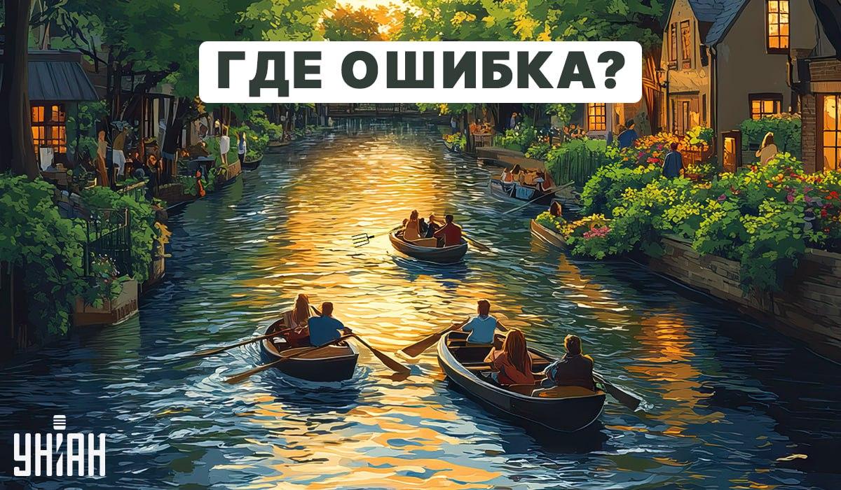 Evo slike koja prikazuje prekrasan večernji gradski krajolik. Između kuća teče rijeka po kojoj ljudi plove u čamcima. Na prvi pogled slika se čini normalnom, ali zapravo postoji ozbiljna greška.