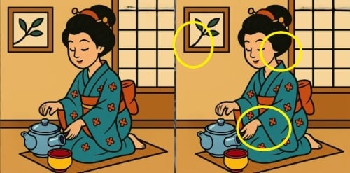 Suočeni ste s klasičnim problemom: dvije slike Kineskinje koja drži šalicu čaja izgledaju identično, ali zapravo se između njih kriju tri male razlike. Mogu se odnositi na boju, oblik ili raspored dijelova.
