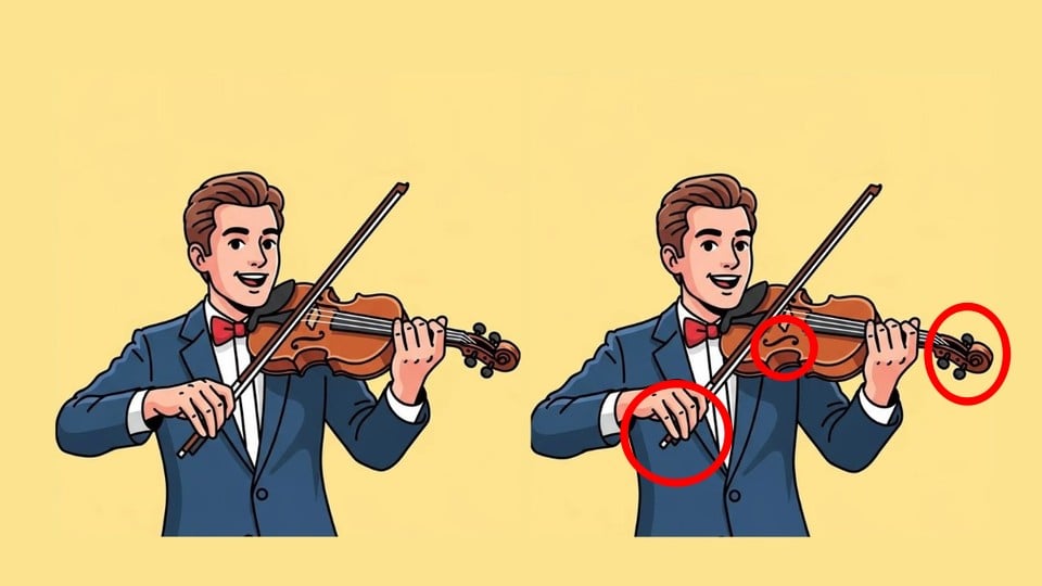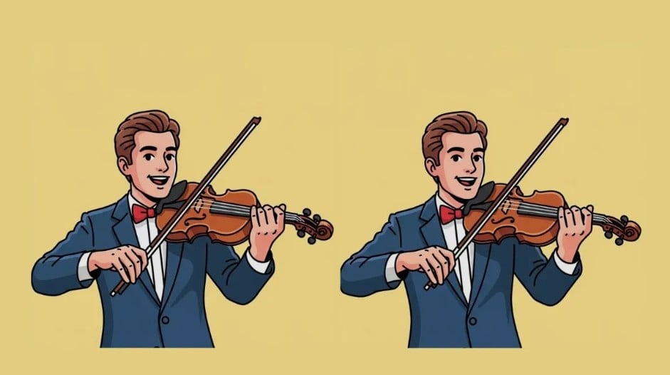 Jeste li spremni za novi izazov? Pažljivo pogledajte dvije slike violinista. Na prvi pogled su identični, ali to je iluzija – između njih se kriju tri male razlike. Možete li ih sve uočiti u 37 sekundi? Vrijeme je da provjerite svoju pozornost!