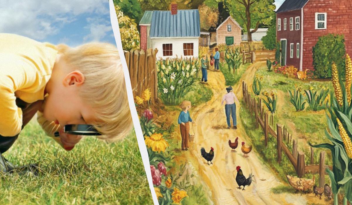 Na primjer, pokušajte shvatiti što nije u redu na crtežu vrta u kojem mlada žena radi. Ili potražite nedostatak na slici slikovite ulice koji nije odmah uočljiv.