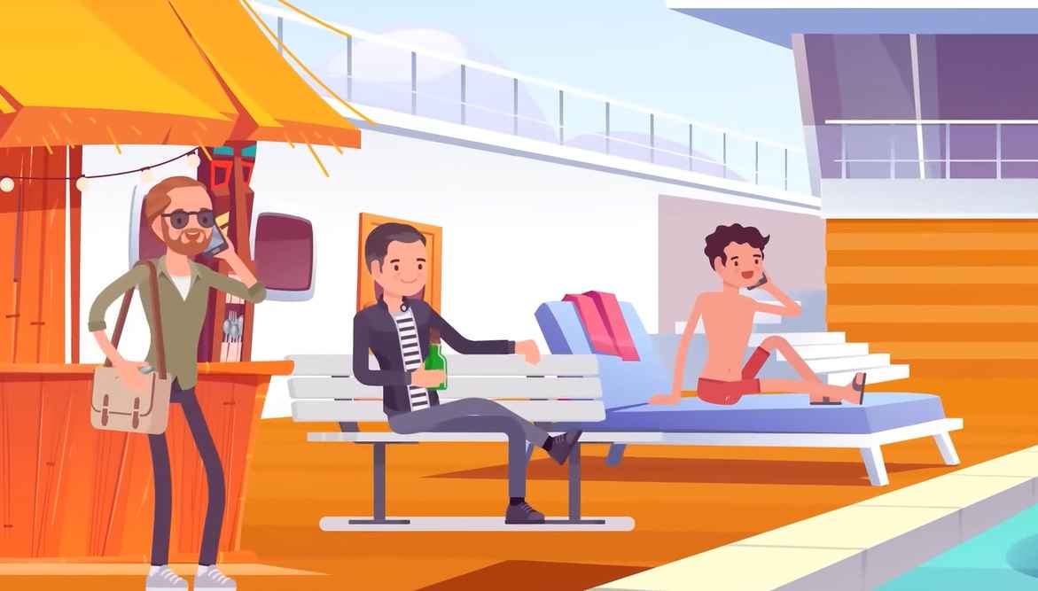 Svaki od momaka je zaokupljen svojim poslom – neki razgovaraju telefonom, dok drugi jednostavno uživaju u tišini uz bazen s pićem u rukama.
