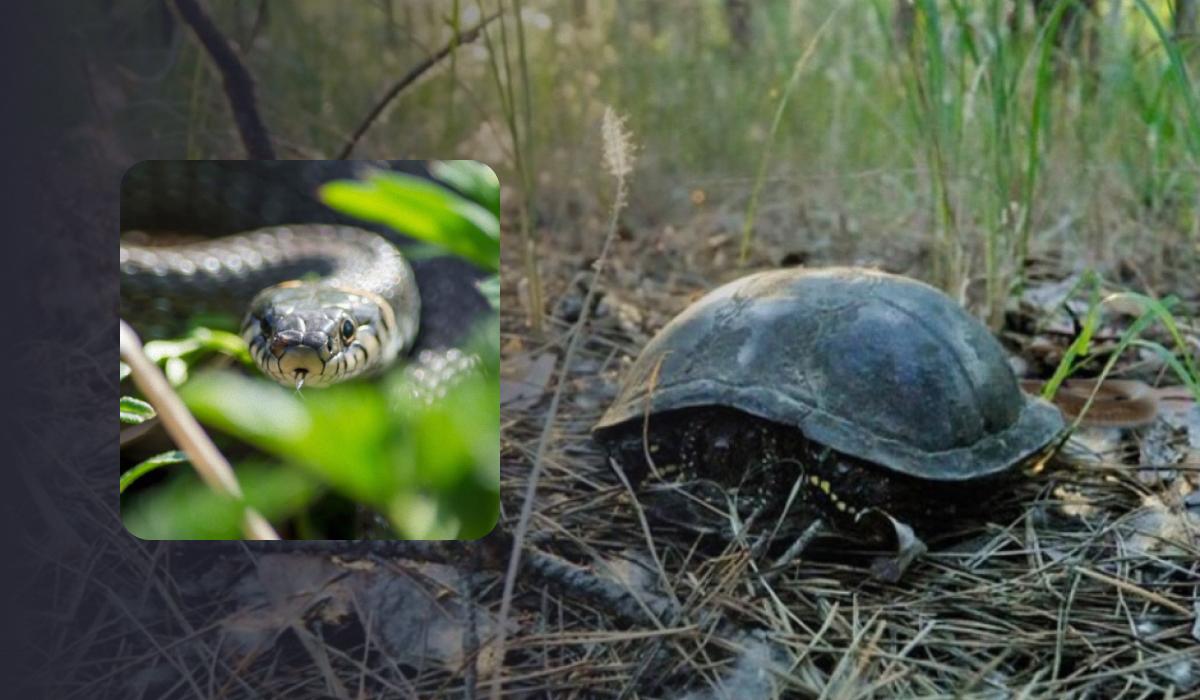 Danas vas Moje poziva da testirate svoju pozornost uz pomoć prekrasne fotografije. Na slici možete vidjeti veliku kornjaču skrivenu u oklopu. Oko nje je suha i zelena trava, grane i drveće.