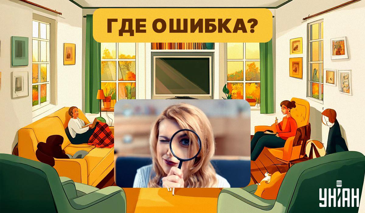 Ispod ćete vidjeti sliku udobne dnevne sobe u kojoj sjede dvije osobe, a pas trči okolo. Ali nešto nije u redu na ovoj slici, a vaš je posao utvrditi što je to.