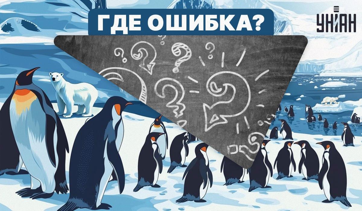 Slika prikazuje jato pingvina kako hodaju po ledu. Na prvi pogled slika izgleda normalno. Ali to nije istina. Ovdje postoji jedna očigledna greška, ali možete li je uočiti? Da biste to učinili, trebat će vam ne samo pažljivost i logika, već i široki pogled.