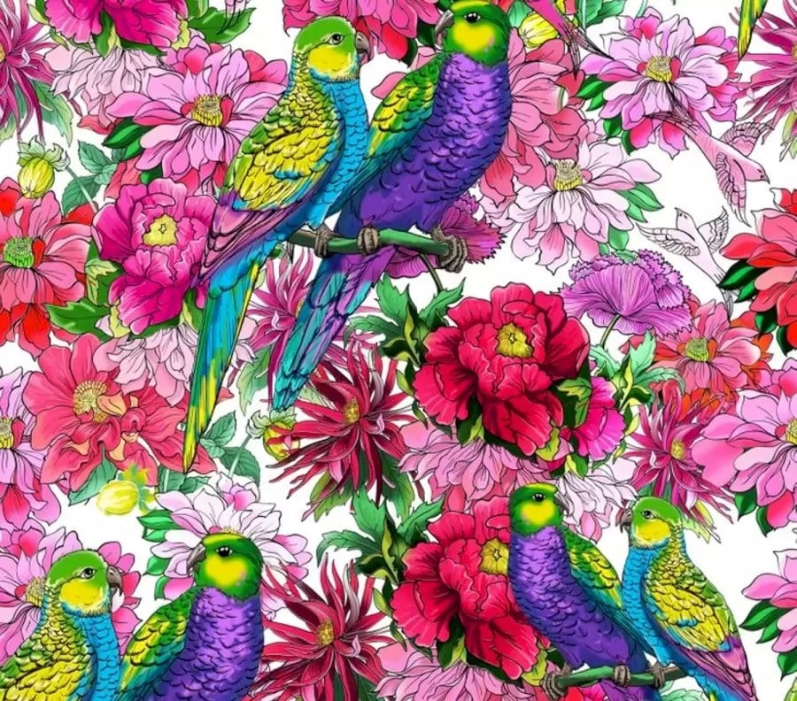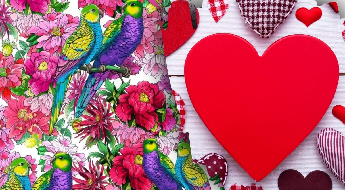 Pred vašim očima je svijetla slika s puno cvijeća i papiga. Ptice sjede u parovima među cvijećem. I u ovom romantičnom ambijentu srce je negdje skriveno. Ne može svatko točno vidjeti gdje se nalazi.
