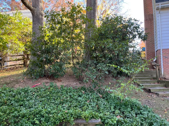 Pas se može vidjeti u podnožju stabla s lijeve strane, gdje je vidljiv dio njegove glave.