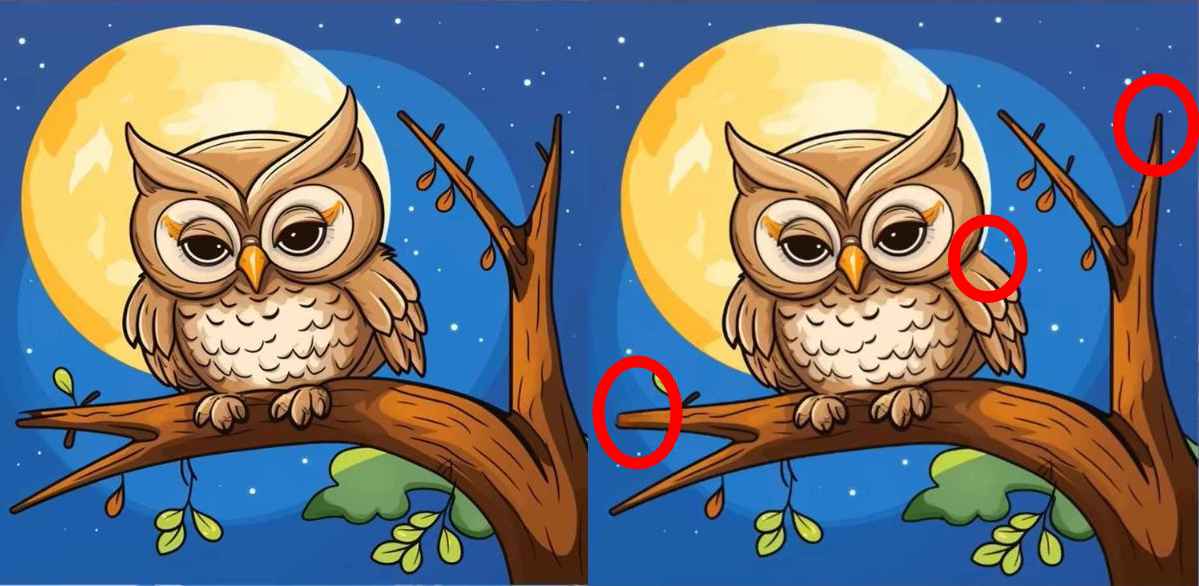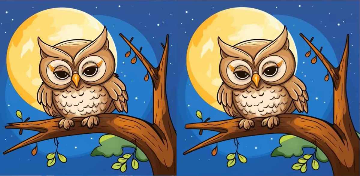 Evo dvije slike sove na drvetu. Na prvi pogled djeluju potpuno identično, ali nije tako – među njima se kriju tri suptilne razlike.